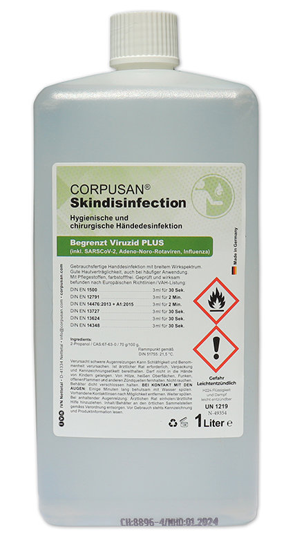Razkužilo za roke, pripravljeno za uporabo, s širokim spektrom delovanja • tudi pri pogosti uporabi koža razkužilo dobro prenaša • vsebuje dragocene negovalne sestavine in je brez parfumov in barvil • Učinkovitost: