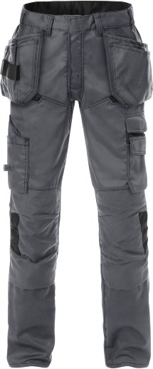 Mehanska Stretch kvaliteta • 2 prednja žepa • 2 ohlapna žepa, eden s 3 manjšimi žepi, zanko za orodje in 1 dodatnim žepom • dvojni šivi v mednožju • 2 zadnja žepa • 2 stegenska žepa • žep za meter z žepom za orodje, žep za pisalo, gumb in zanka za delovni nož • žep na hlačnici s poklopcem in sprijemalom, žep za GSM in dodatni žep s pokopcem in sprijemalom, D-obroček pod poklopcem • kolenski žepi so ojačani s CORDURA® materialom • po višini nastavljivi kolenčniki • s CORDURA® materialom ojačani zaključki hlačnic • certificirane glede na EN 14404 za Fristads 9200 KP kolenčnike • primerne za industrijski pranje glede na predpis ISO 15797 • certificirane glede na OEKO-TEX® 100 predpis
