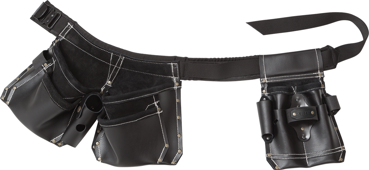 Trpežen in trden pas za orodje za električarje in mizarje z žepi za orodje in material. Izdelano na švedskem iz švedskega usnja.