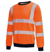Dobrovidna majica • z mehko, brušeno notranjostjo • segmentirane odsevne črte • okrogel ovratnik z ovratnim trakom • manšete na bokih, vratu in rokavih s kontrastnimi rebrastimi manšetami v mornarsko modri barvi • OEKO-TEX® certificirana